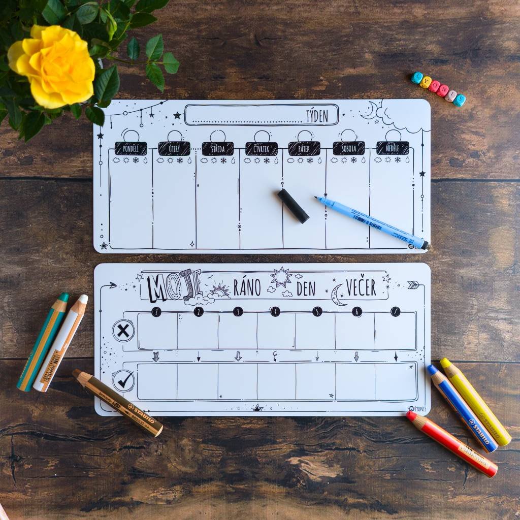 Kompletní sada 6+: Malý týdenní plán & Můj den krok za krokem (Černobílá edice)