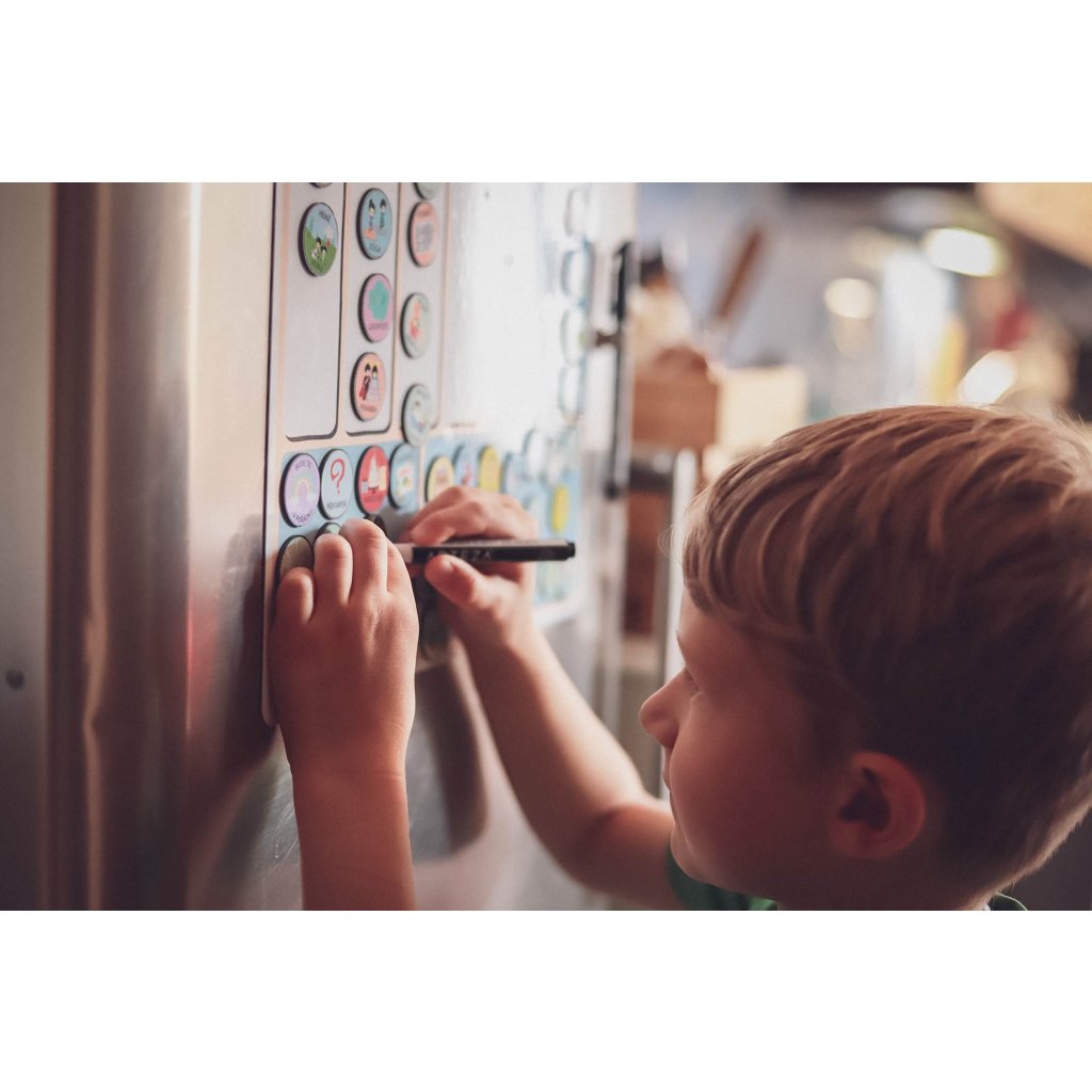 Máte doma vestavěnou lednici? Nebo chtějí mít děti plán ve svém pokoji? Přikupte magnetickou tabuli, na které plán i magnetky drží perfektně a kterou můžete zavěsit kamkoli na stěnu.