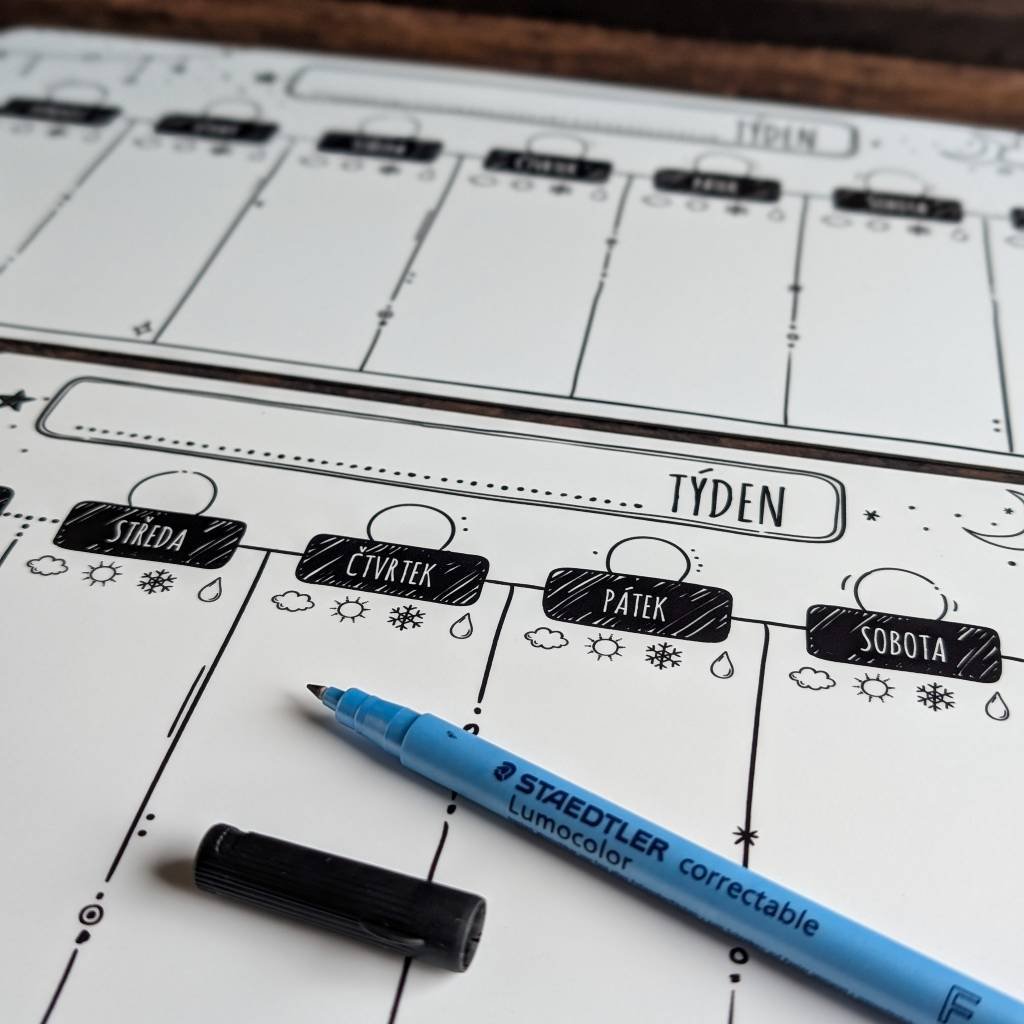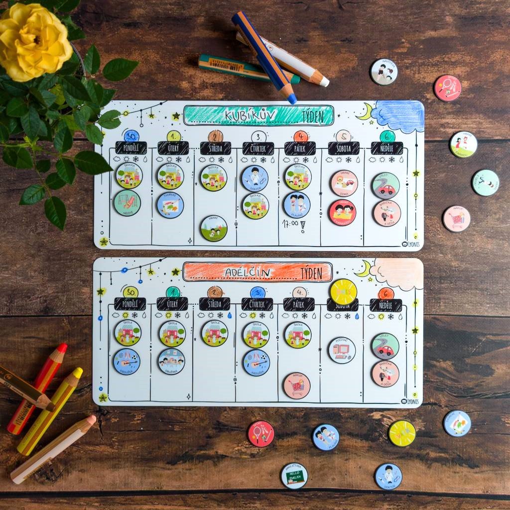 Týdenní plánovací sada pro 2 děti: 2 x Malý týdenní plán (Černobílá edice)